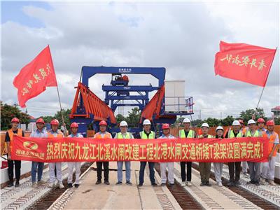 北溪水閘改建工程北港交通橋預(yù)制梁鋪設(shè)完成